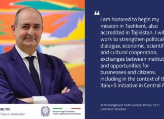 TASHKENT – Guido De Sanctis ha iniziato il mandato di Ambasciatore d’Italia a Tashkent, in Uzbekistan. “Onorato di avviare la mia missione a Tashkent,...