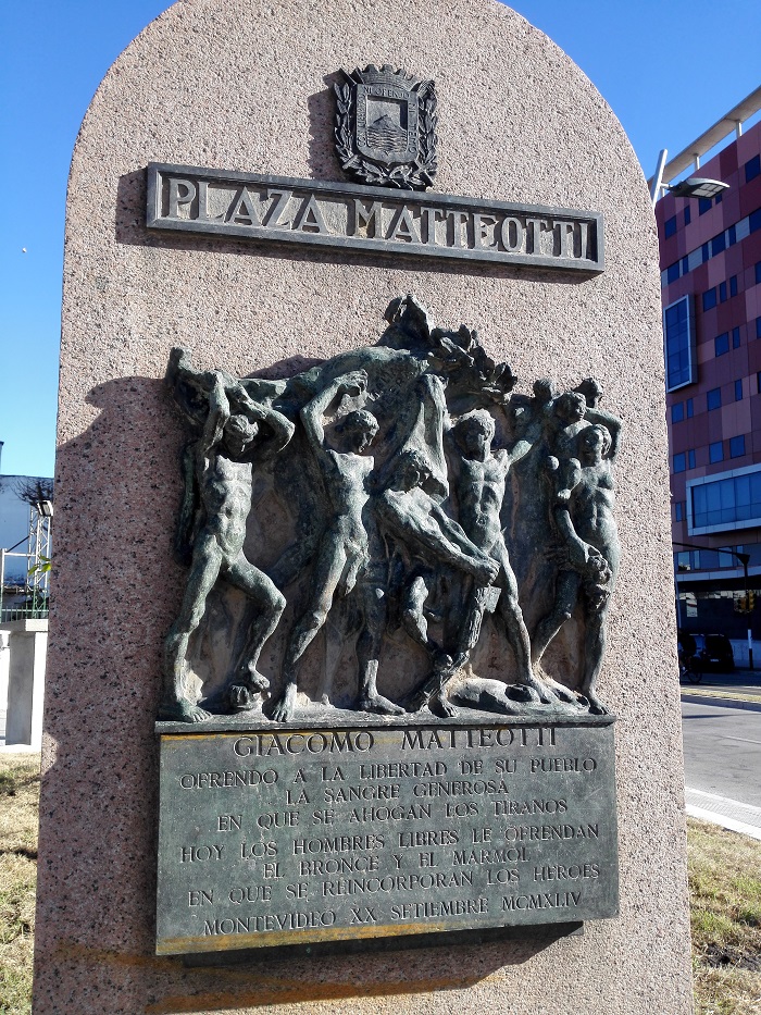 La piazza di Montevideo che ricorda il deputato antifascista fu inaugurata nel 1944 ospitando una scultura in bronzo opera di Enna Vanoni, un'emigrata originaria di Pievepelago (Modena). Trasferitasi in Uruguay nel 1931, Enna Vanoni lavorò per la Fundición Vignale, collaborò con il riconosciuto scultore José Belloni e infine morì nel 1970. Nella targa commemorativa verso Matteotti viene sottolineato lo spirito di sacrificio per il popolo italiano contro la tirannia e in difesa della libertà.