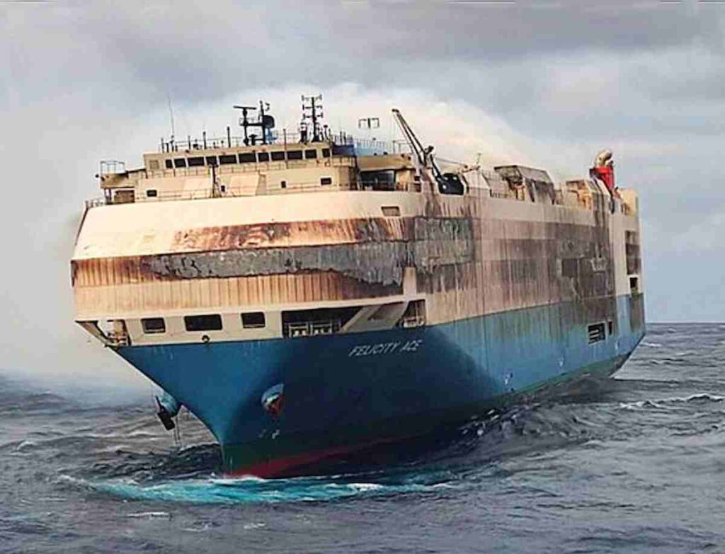 L’incendio della nave per trasporto veicoli Felicity Ace della compagnia Mitsui Osk Lines, provocato con molta probabilità dalle batterie delle auto elettriche a bordo, ha mandato in fumo 3.945 auto auto di lusso. Tra queste 1100 sono Porsche e 189 Bentley. Le altre sono Audi e Volkswagen. L’incendio a bordo si è verificato mentre navigava a ovest di Ponta Delgada in Portogallo.