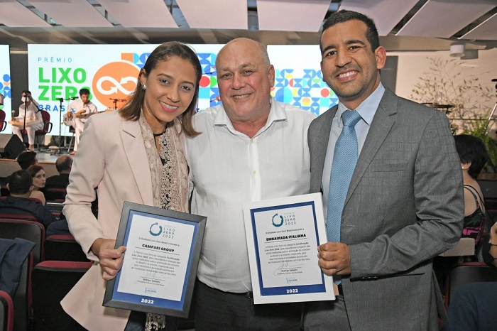 L’Ambasciata d’Italia a Brasilia ha vinto il premio “Lixo Zero Brasil 2022”, promosso dall’Istituto Lixo Zero Brasil, nella categoria “Certificazione”. Il premio viene assegnato ogni anno a persone o istituzioni di rilievo che si sono distinte con esempi concreti nella promozione di pratiche relative al concetto di “Rifiuti Zero”. Alla cerimonia di consegna del riconoscimento, che si è tenuta a Cuiabá, capoluogo dello Stato di Mato Grosso, è stato consegnato un premio anche a Campari Group, prima fabbrica italiana Rifiuti Zero in Brasile.