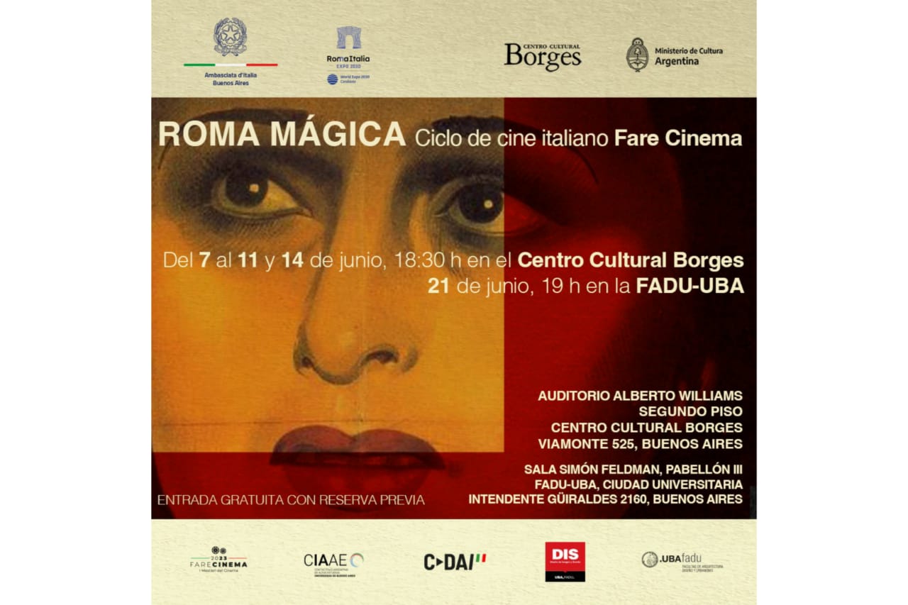 BUENOS AIRES - Dal 7 al 21 giugno si terrà a Buenos Aires la rassegna cinematografica “Roma mágica”, realizzata dall’Ambasciata d’Italia a Buenos Aires in collaborazione con il “Centro Culturale Borges” (CCB), la Facoltà di Architettura, Design e Urbanismo dell’Università di Buenos Aires (FADU-UBA) e il Centro Italo-Argentino di Alti Studi (CIAAE).
