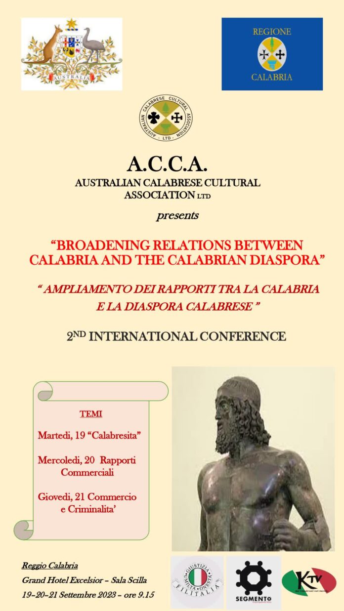 REGGIO CALABRIA - La città di Reggio Calabria sarà sede, tra il 18 e il 21 settembre, di un’importante iniziativa organizzata dall’Associazione Culturale Calabrese di Australia (ACCA), guidata da Vincent Morfuni. Si terrà presso il Grand Hotel Excelsior la seconda conferenza internazionale che quest’anno si occuperà di ampliamento dei rapporti tra la Calabria e la diaspora Calabrese.