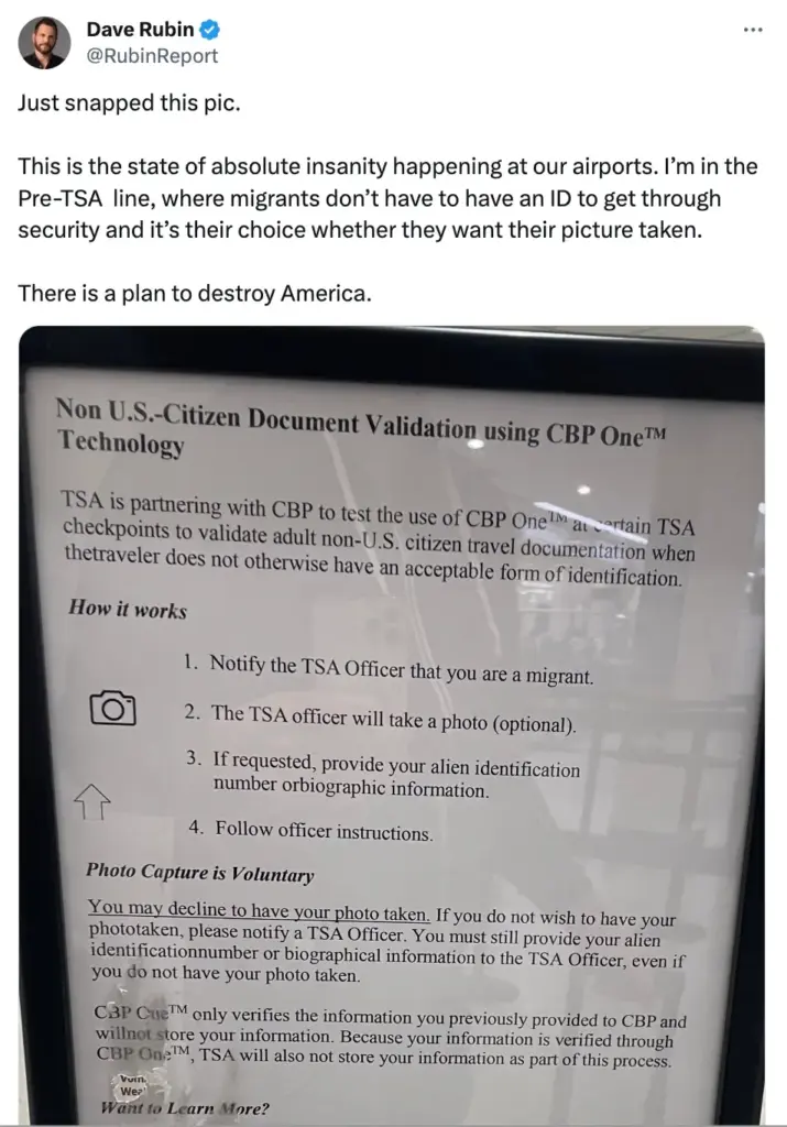 I viaggiatori americani sono indignati dai cartelli apparsi negli aeroporti statunitensi che sembrano consentire ai migranti illegali di salire sui voli senza mostrare un’adeguata identificazione.
