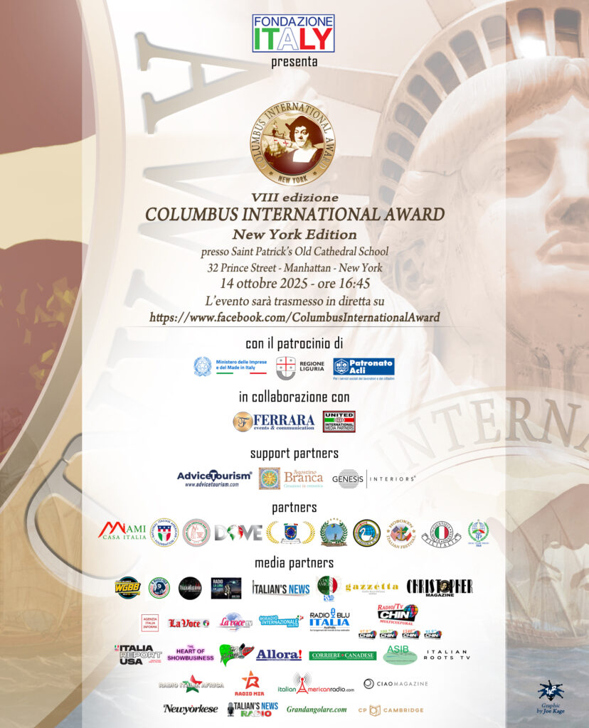 Dopo l’edizione al Palazzo Tursi di Genova dello scorso 8 settembre, il Columbus International Award approda nella Grande Mela con un premio che serve a parlare di Italia, della sua storia, di chi erano gli italiani, di cosa sono ora, di cosa possono offrire al mondo; ma anche delle sue eccellenze che hanno scritto e scrivono la storia, sia in Italia che all'estero, specie nei campi culturale, artistico e scientifico. Il Columbus International Award è infatti un'occasione che parte dal visionario e intraprendente Cristoforo Colombo (un eccellente uomo di cultura che ha cambiato notevolmente il corso della storia, chiudendo addirittura un'epoca), per elogiare chi diffonde e/o protegge la cultura italiana nel mondo, la cultura a 360°, l’identità, la storia e l'orgoglio italiano.