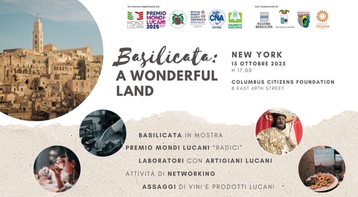 NEW YORK - Per una sera, la Basilicata è tornata a raccontarsi nel cuore di Manhattan. Nella prestigiosa sede della Columbus Citizens Foundation a New York, si è tenuta la terza edizione di “Basilicata: a Wonderful Land”, accompagnata dalla cerimonia del Premio Mondi Lucani – Sezione Radici 2025. Un evento che, anno dopo anno, si conferma come un ponte vivo tra la Lucania e i suoi figli nel mondo, un’occasione per far conoscere identità, tradizioni e talenti di una terra capace di emozionare.