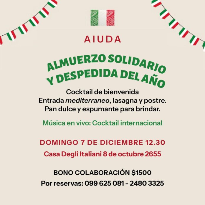 Home Dall'Uruguay AIUDA: ‘Almuerzo solidario y despedida del año’ Dall'Uruguay AIUDA: ‘Almuerzo solidario y despedida del año’ 19 Novembre 2025 0 0 Condividi su Facebook Tweet su Twitter ARTICOLI CORRELATIALTRO DALL'AUTORE Dall'Uruguay Conflitto d’interessi con Gente d’Italia – Aldo Lamorte quando pagherà i suoi debiti “pendenti” dal marzo 2013? Dall'Uruguay Uruguay reafirmó su compromiso con la sostenibilidad y la seguridad alimentaria en los 80 años de la FAO Dall'Uruguay Asociación Calabresa, ‘Fiesta de Fin de Año’ NOTIZIE RECENTI L’Italia dell’innovazione protagonista in Ambasciata a Londra 19 Novembre 2025 Tornare in Italia conviene: flat tax e non solo nel dibattito... 19 Novembre 2025 Cosa prevede la risoluzione Onu approvata su Gaza: la fase 2... 19 Novembre 2025 In Italia un minore su quattro è obeso 19 Novembre 2025 Carica altri I PIÚ POPOLARI Salute Infezioni resistenti agli antibiotici, in Ue 35mila morti l’anno America Latina Usa annunciano nuova operazione antinarcos. Maduro a Trump: “Pace” Primo Piano Mosca: “Droni ucraini su una centrale nucleare in Russia”. Nuovi attacchi... Dall'Italia Si scava sotto la Casa del Jazz a Roma per cercare...