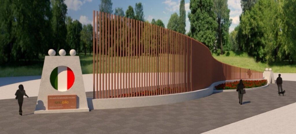 Il progetto ideato dall'architetto Renato Solio, lungo 30 metri e alto 6, si trova nella Piazza della Stazione, nel Barrio São Pelegrino, culla dell'immigrazione italiana.