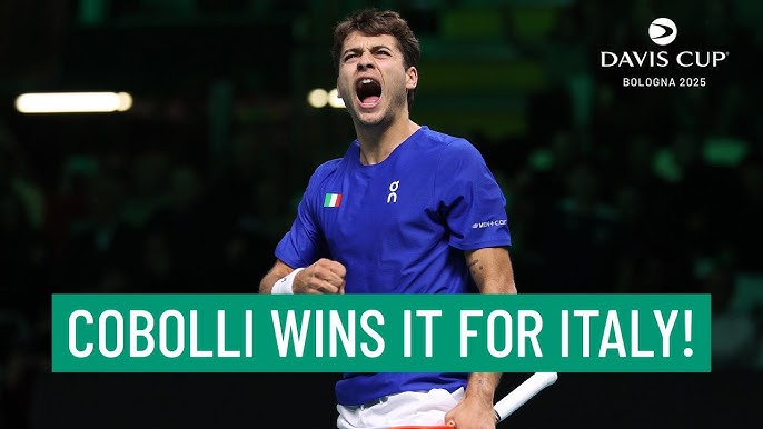 BOLOGNA – Si è parlato molto in questi giorni del Flavio Cobolli bambino che incontra sul suo cammino tennistico Matteo Berrettini, di sei anni più grande. L’infanzia è finita, perché oggi il ventitreenne romano ha dimostrato la maturità e il coraggio necessari a guidare la nazionale italiana verso la finale della Coppa Davis di domenica, vincendo la partita della vita, 17-15 al tie-break del terzo set (il sesto più lungo della storia della Davis in un set decisivo) contro un encomiabile Zizou Bergs. Italia batte il Belgio 2-0 e va per la terza volta di fila in finale, grazie a un indomito Cobolli. In platea a seguire le gesta dell’amico, anche l’ex giocatore della Fiorentina e della Roma, Edoardo Bove, inquadrato a più riprese dalle telecamere. Il primo set trascorre velocemente e si chiude 6-3 per l’azzurro, che non concede palle break e si regala tre ace. La storia cambia nel secondo set. Zizou Bergs sa che deve tentare il tutto per tutto per tenere a galla il Belgio e sperare di portarlo sull’1-1. La frazione si decide al tie break, che si chiude a favore del Belgio. Il belga inizia il terzo set in spinta, sull’onda dell’entusiasmo per essersi rimesso in gioco. Cobolli sente la pressione, subisce l’iniziativa dell’avversario, più determinato nel prendere il comando del gioco. Nel terzo gioco salva tre palle break. Tutta la panchina dell’Italia è in piedi. Bove si mette le mani nei capelli. Al 5-4 per l’Italia si arriva su un’altalena emozionale e tennistica che toglie il respiro.