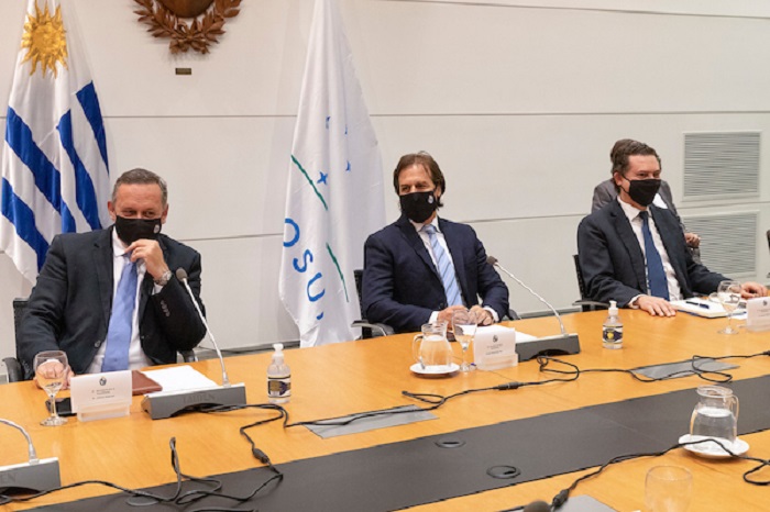 Alvaro Delgado, Luis Lacalle Pou y Rodrigo Ferres durante la reunion del Consejo de Ministros en Torre Ejecutiva. Foto: Mauricio Zina/ adhocFOTOS