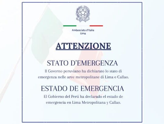 Dichiarato lo Stato d’Emergenza a Lima: le raccomandazioni dell’Ambasciata