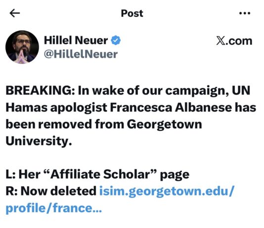 Mentre Bologna le regala la cittadinanza, la Georgetown University chiude i rapporti con Francesca Albanese