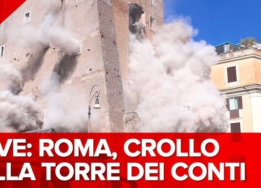 Crolla una parte della Torre dei Conti nel centro di Roma