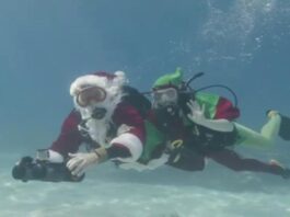 Video, Florida: l’annuale immersione subacquea di Babbo Natale