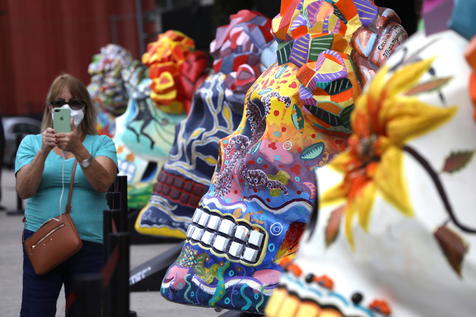 Giant skulls honor Frida Kahlo for the Day of the Dead in Mexico