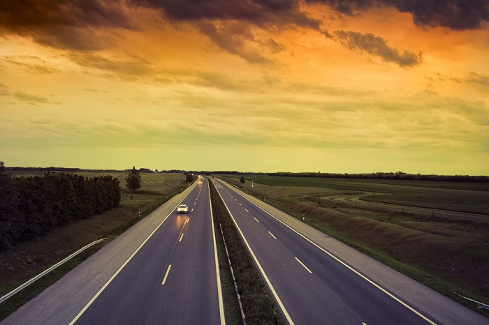 Highway in stormy day