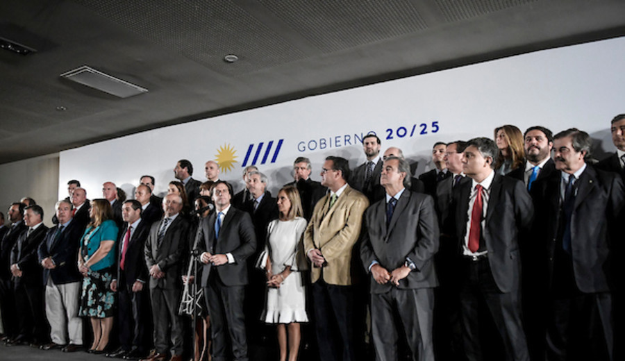 Luis Lacalle Pou durante la presentación del próximo gabinete del Poder Ejecutivo en conferencia de prensa en el hotel Dazzler de Montevideo. Foto: Javier Calvelo / adhocFOTOS