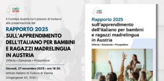 VIENNA - Verrà presentato il 27 novembre alle 18.30 nella sede dell’Istituto Italiano di Cultura di Vienna il "Rapporto 2025 sull'apprendimento dell'italiano per bambini e ragazzi madrelingua in...